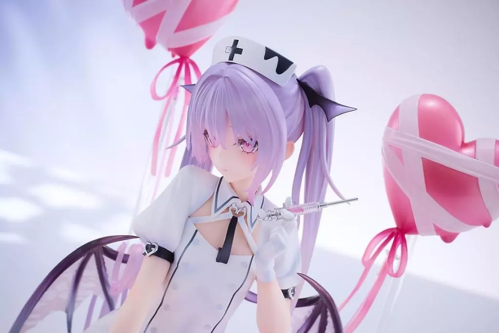 ナース衣装のイヴちゃんの他、バルーン・点滴がハート型アクリルベース上に展開されイラスト忠実に再現しています。